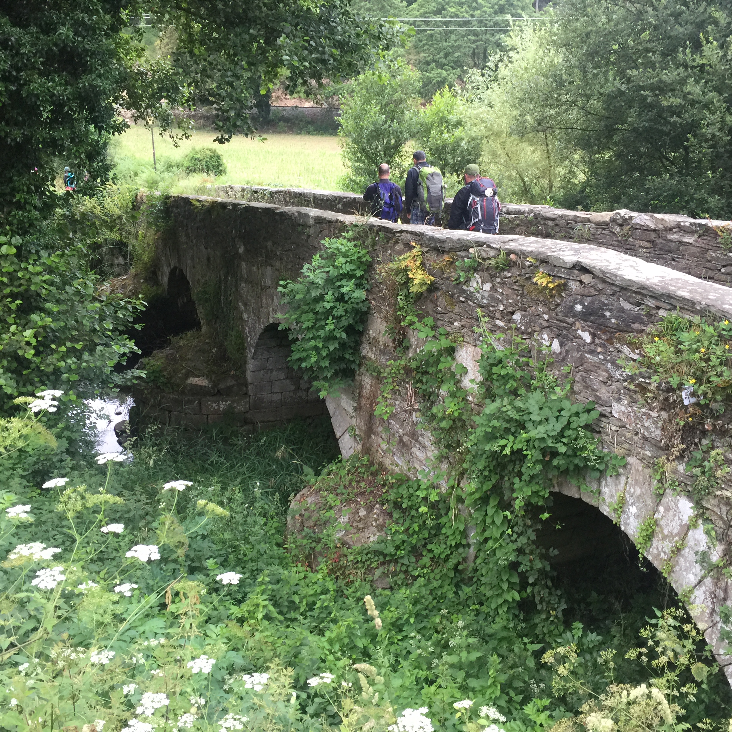 Mas foi uma unanimidade que o dia mais marcante para todos foi o dia da chuva: 13 de junho de 2017. Este dia percorremos 22,5 km no trecho entre Sarria e Portomarin. Nesse dia passamos pelo marco “100”, isto é, faltavam 100 km para chegar a Santiago.