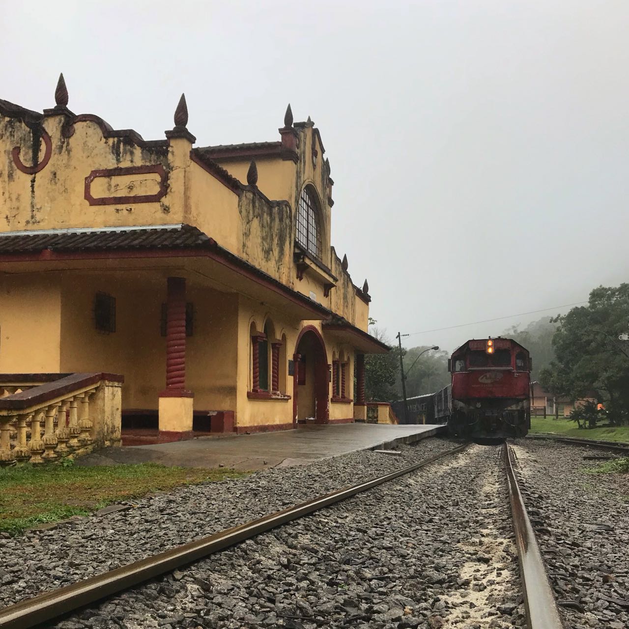 Chegando a Estação Engenheiro Langue nos demos conta que a previsão do tempo deu uma grande errada e estávamos tendo um fenômeno chamado “chuva orográfica”. Saiba um pouca mais sobre esse fenômeno no meu artigo sobre Tipos de Chuva.