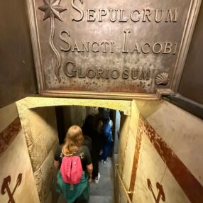Depois de abraçar o Apóstolo, os peregrinos costumam seguir até a cripta da Catedral e visitar o túmulo de Santiago. Estamos diante de um dos rituais mais modernos, do final do século XIX, visto que os restos mortais do Apóstolo nem sempre estiveram sob o altar-mor. - Assistir à Missa do Peregrino:
