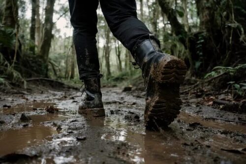 - Importância: O calçado impermeável (com membrana como Gore-Tex ou similar) impede que a água externa da chuva, poças ou orvalho penetre. Pés molhados amolecem a pele, causam bolhas e aumentam drasticamente o risco de hipotermia.