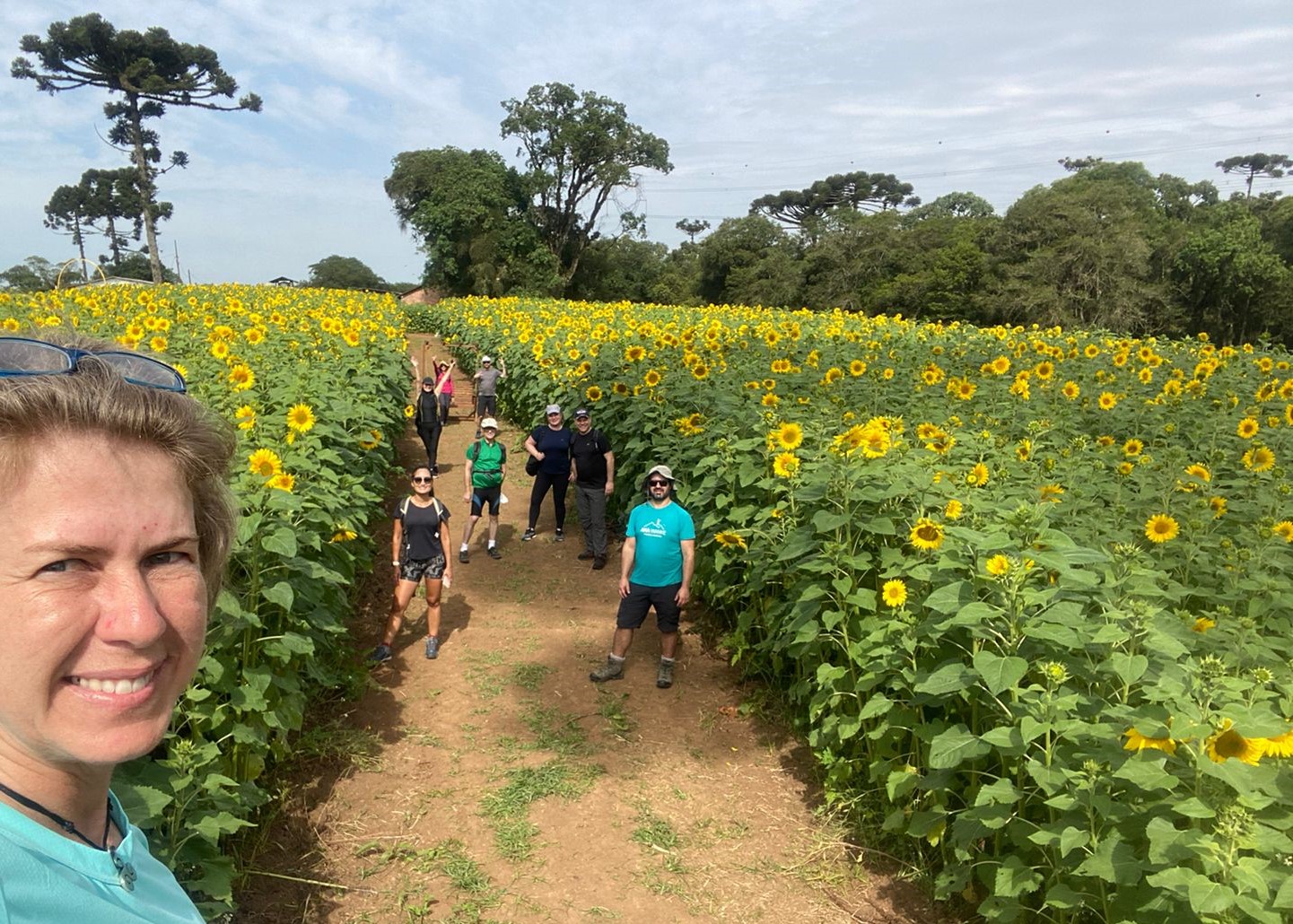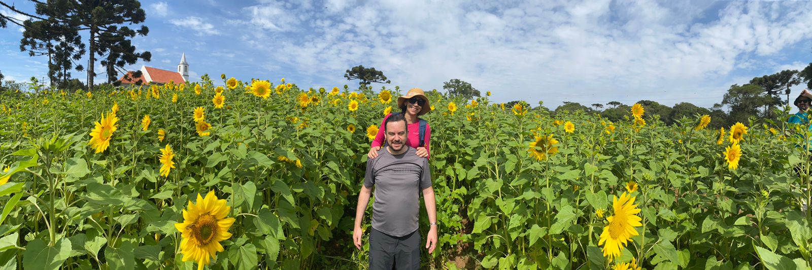 Nossa caminhada será circular e de 17 km no total. Logo no início da caminhada passaremos por um lindo campo de girassóis dentro de uma propriedade particular na região rural de São José dos Pinhais.