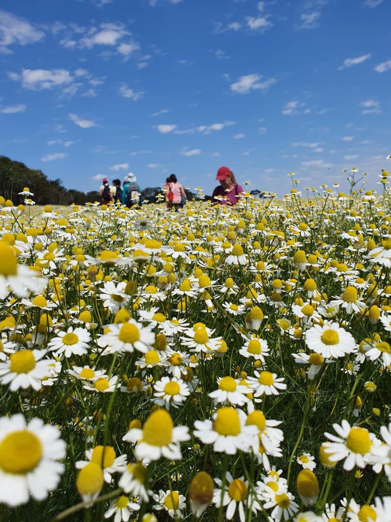 A camomila foi trazida ao país há cerca de cem anos por imigrantes alemães, ucranianos e poloneses que se instalaram no Paraná. O município de Mandirituba concentra a produção de camomilas e temos a permissão dos agricultores e da secretaria de turismo deste município para realizar esta caminhada!