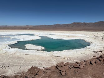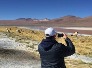 - Faremos os procedimentos de imigração do Chile para a Bolivia e seguiremos até a Laguna Verde, no sopé do Vulcão Llicancahur. Passaremos pelo Vale Dalí, com formações incríveis que fazem lembrar as obras de Salvador Dali, e seguiremos em direção às Termas de Polques, os Geysers Sol de Mañana. Será um dia cheio, por isso nosso almoço será um piquenique no caminho.