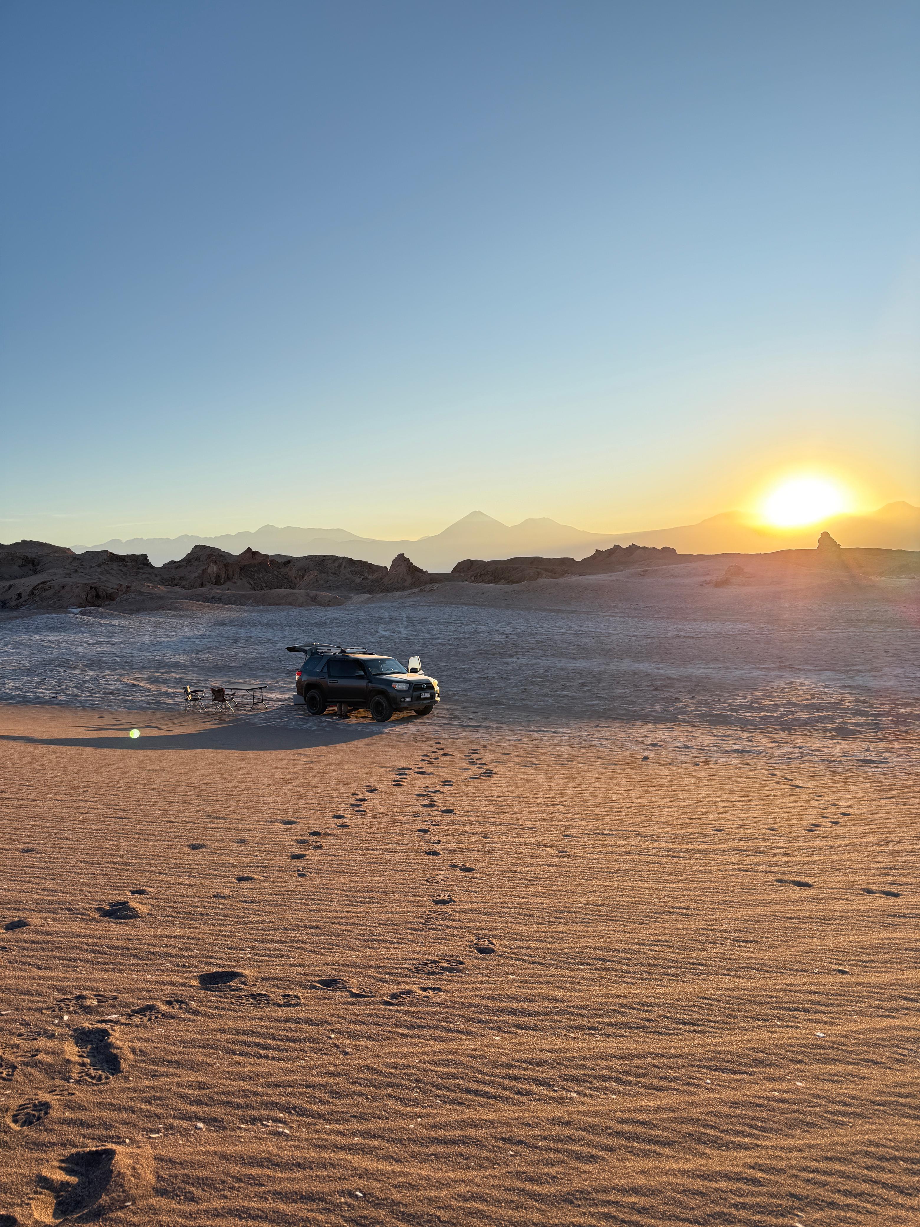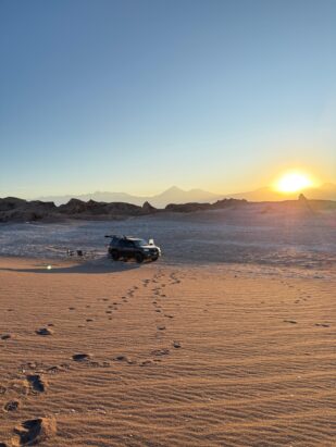 - Tarde: Visitaremos o Vale da Lua e as lindas dunas do Vale da Morte que fica a 13 quilômetros de San Pedro do Atacama e foi declarado Santuário da Natureza e Monumento Natural. O lugar tem beleza paradisíaca, formada por uma depressão rodeada de pequenos montes com impressionantes cumes afiados. Em um cenário que parece outro planeta, a caminhada ao Vale da Lua tem caminhos bem demarcados e dificuldade baixa. O trekking passa por crisanta, los achaches, mirante para o anfiteatro e três marias. Além disso, o Vale da Morte em meio às dunas, é perfeito para que se deleite com o pôr do sol rodeado por cores no entardecer e um delicioso coquetel.