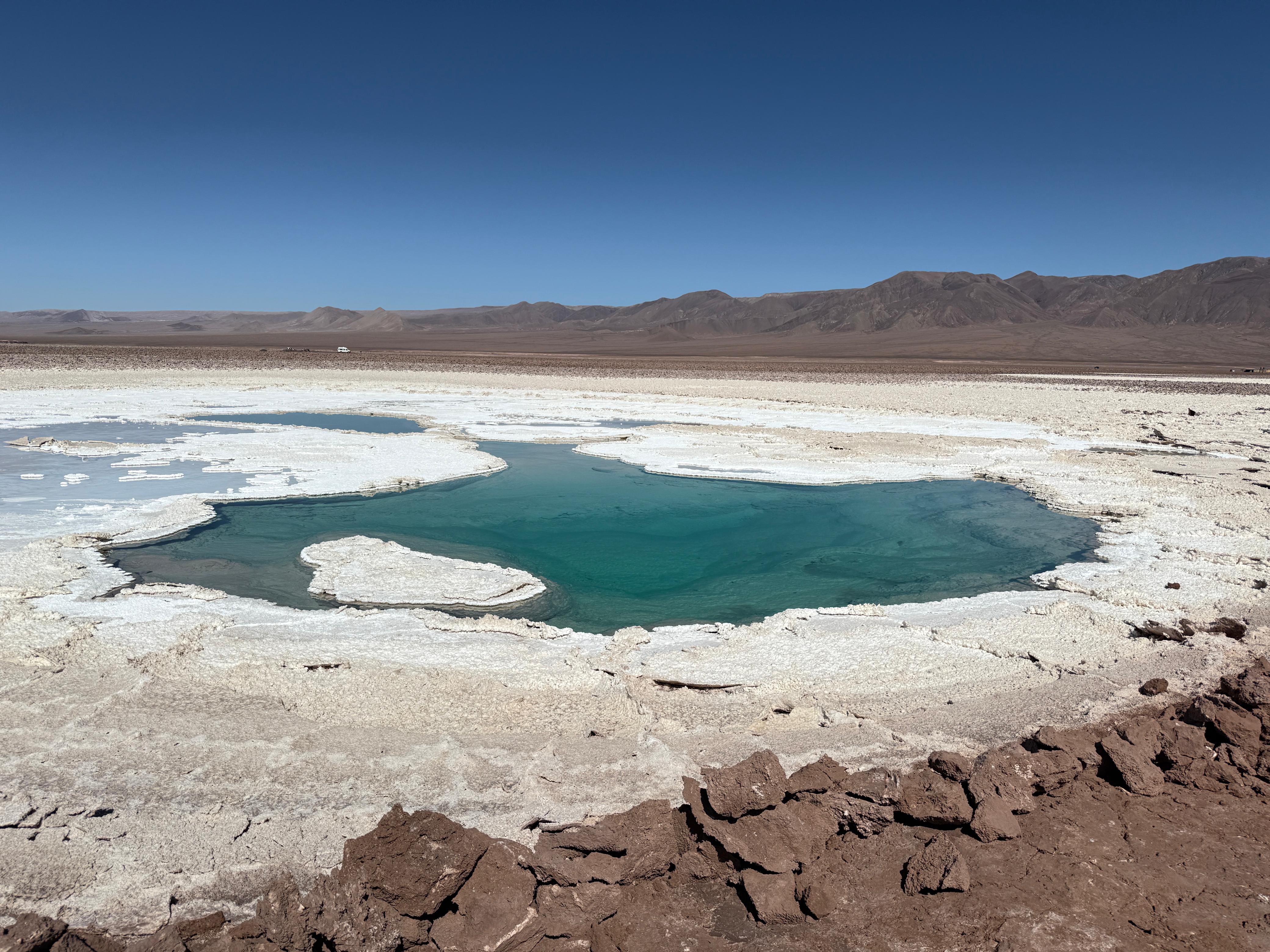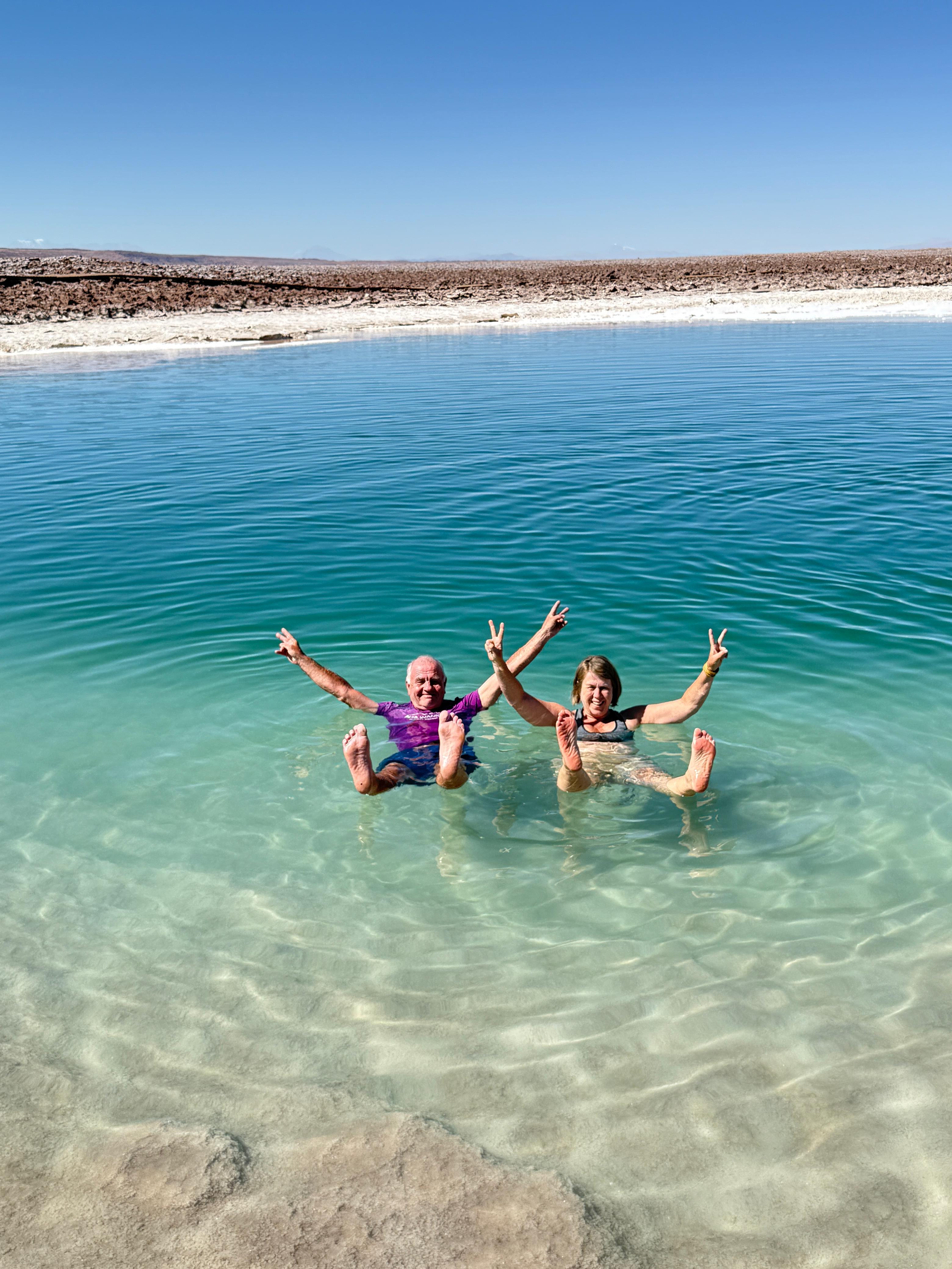 - Tarde: Em meio ao cenário árido do Deserto do Atacama, as Lagunas Escondidas de Baltinache brilham como jóias escondidas. Imagine-se imerso na água azul-turquesa que parece saída de um sonho. Além da beleza estonteante, a surpreendente salinidade dessas lagoas permite uma experiência única – flutuar na superfície da água com facilidade. Uma aventura de tirar o fôlego que você não pode perder ao explorar o Atacama!
